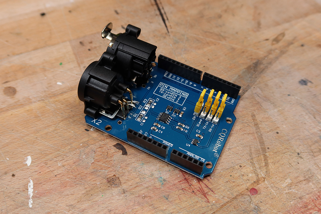 Lighting data flows through a DMX transceiver, letting me control any standard DMX fixture with precision. And because performance setups can’t afford to lose their memory, I used EEPROM to store all the patch settings between sessions.